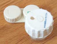 ブルーのカラーコンタクト。