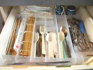 きのう書いていた、2段目離引き出しを100円の仕切りで仕切って、分類しました。