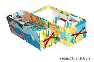 この小物入れもそういう経緯です。貼ってあるのは、布ではなくカレンダーです。カレンダーも可愛い柄だと捨てられないんです…。