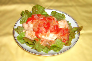 とり胸肉 1枚、玉ねぎ 小1個、トマト 1個、しょうが・塩・胡椒 適量