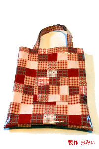 本を入れるので、表布はラミネート加工の布です。パッチワーク風でかわいい布ですよねv